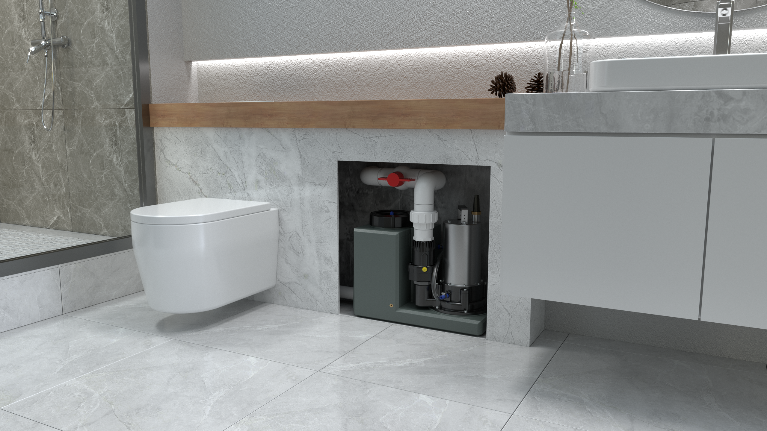 智能污水提升器輕易就幫助車庫開辟出一個帶衛(wèi)生間的健身房了。