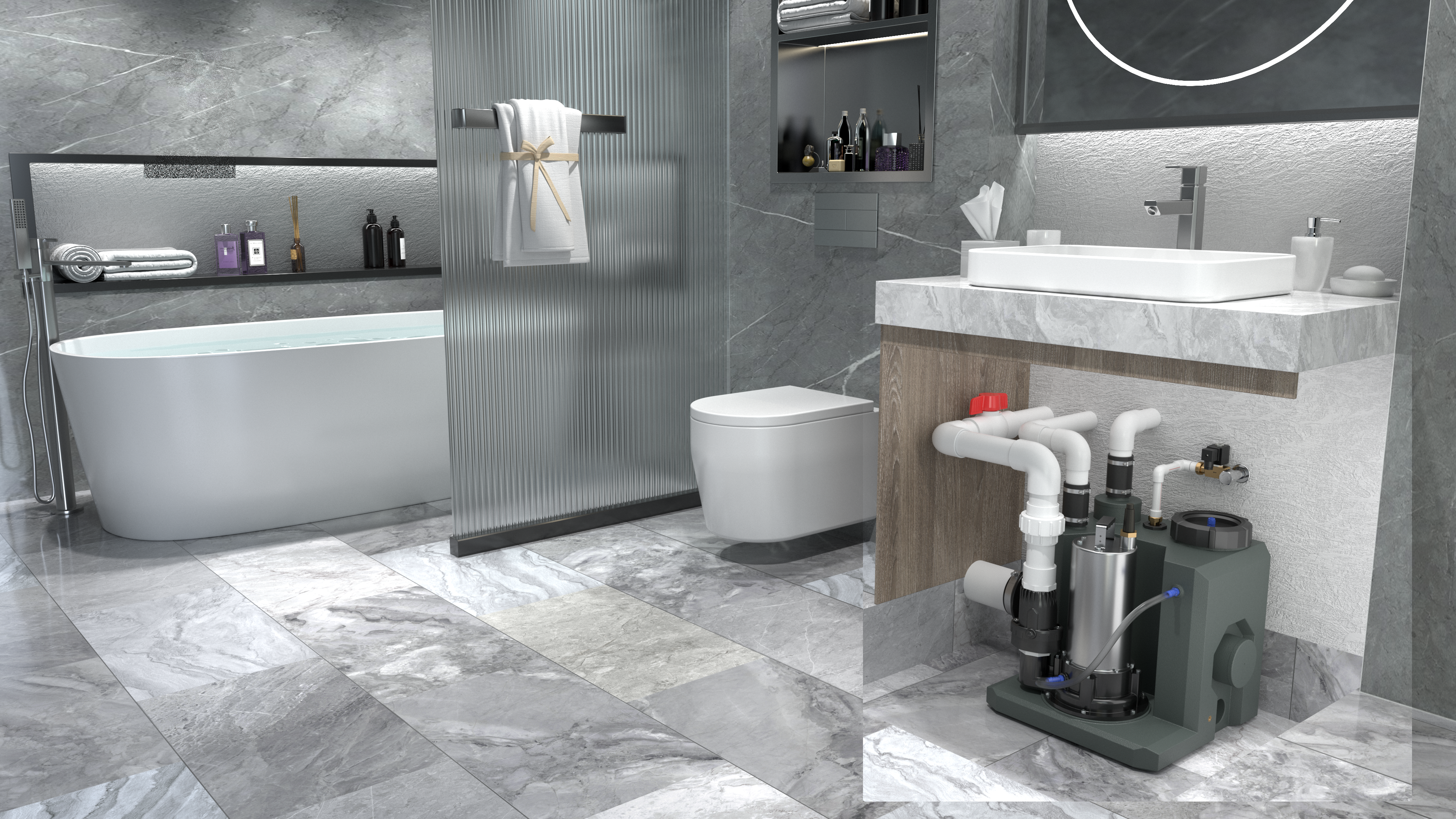 所以說如果是家中安裝小型污水提升器的話盡量不要做地漏,選擇可抬高的淋浴房,如果是大型污水提升器可埋入地下的,那么就不用考慮這么多了,淋浴間的設(shè)計(jì)就沒有排水的問題了!